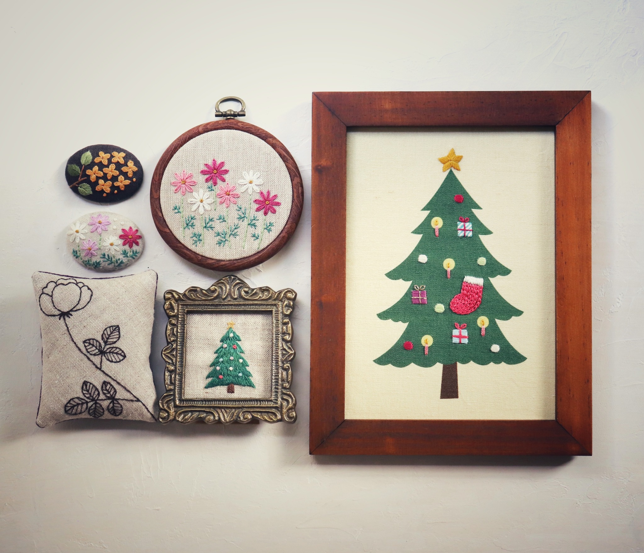 刺繍作業、3時間くらいはあっという間ですが、時間内に小さなモチーフを仕上げたり、できるところまで作業して持ち帰りにしたり、ゆっくり次回の教室で仕上げたり。お好きなペースで楽しんで頂けたらなと思います。