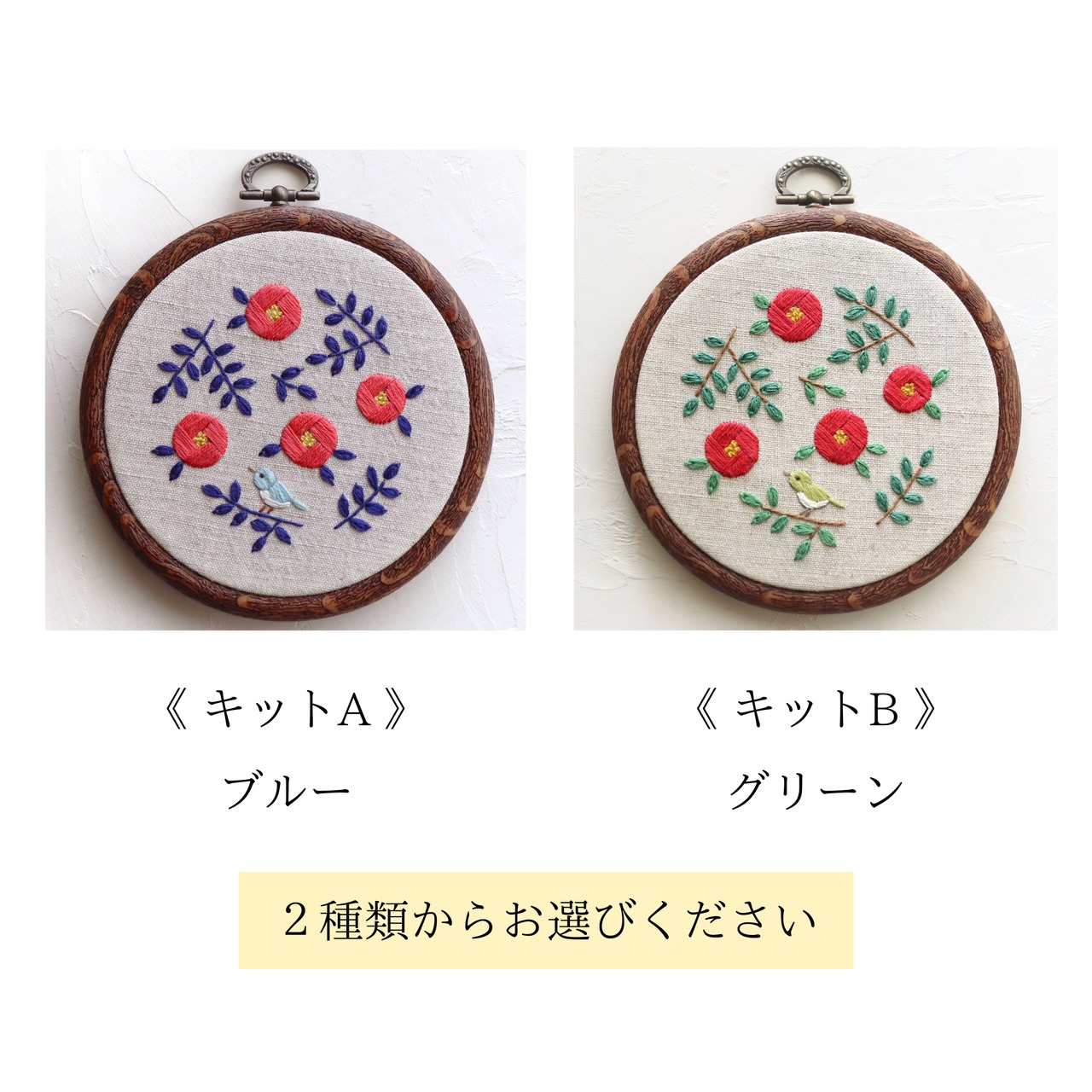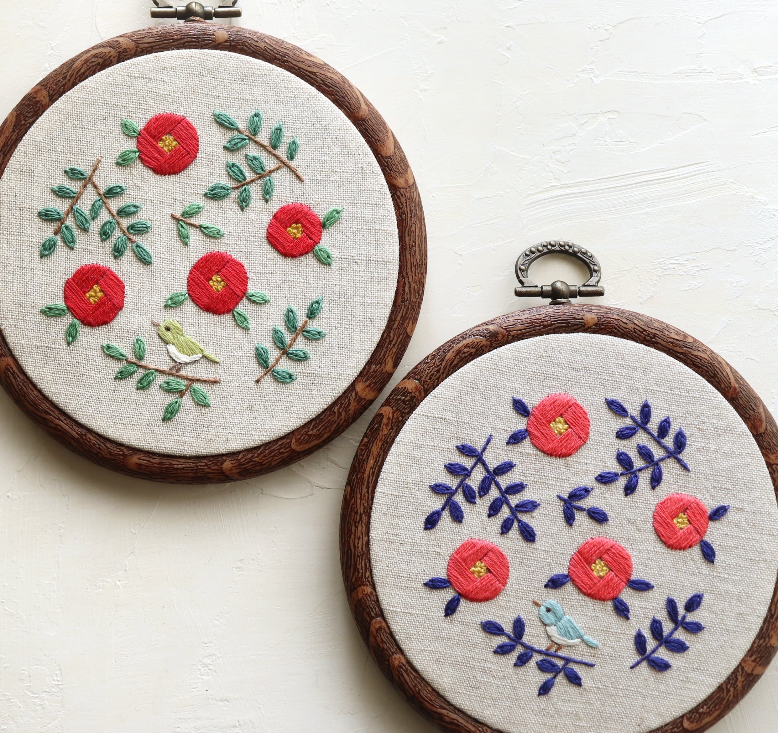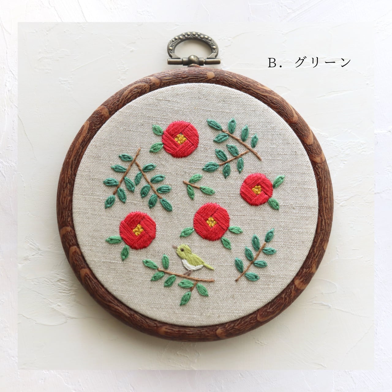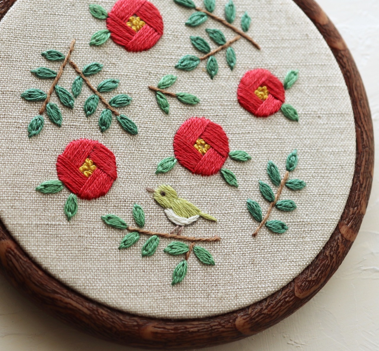 刺繍キット(4)椿(説明書・動画付き)ツバキと小鳥