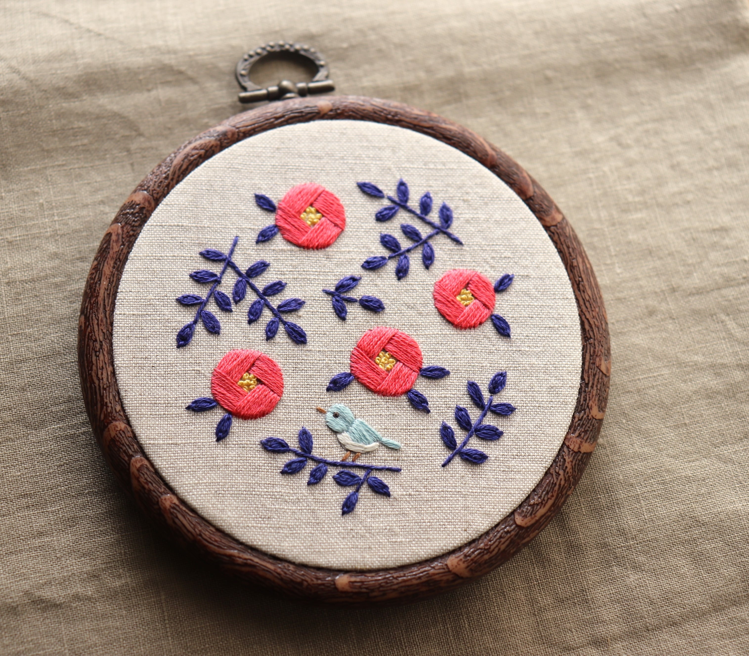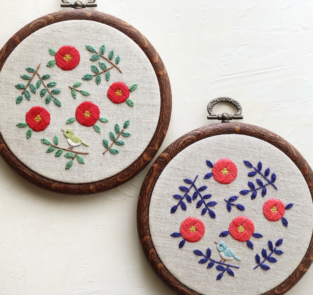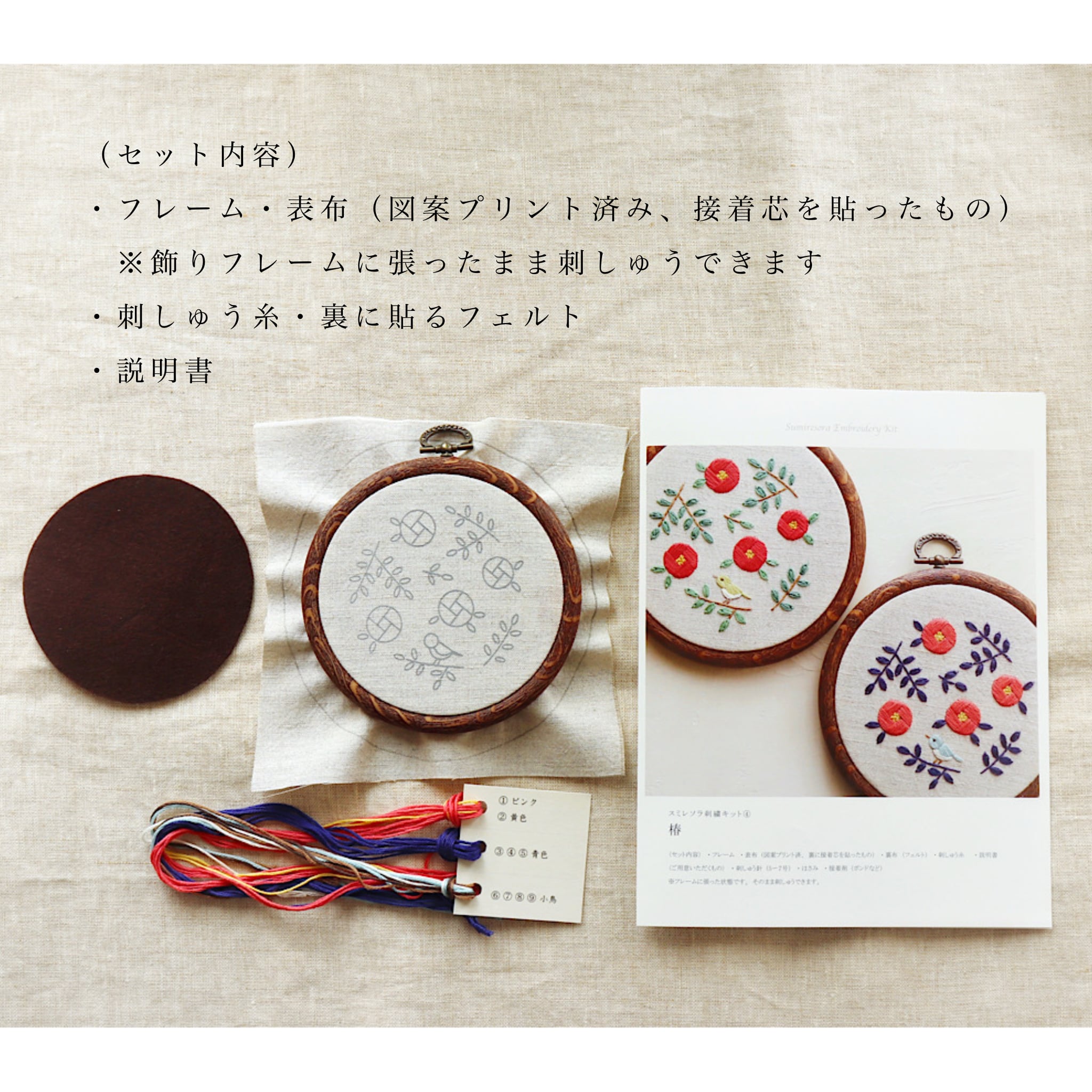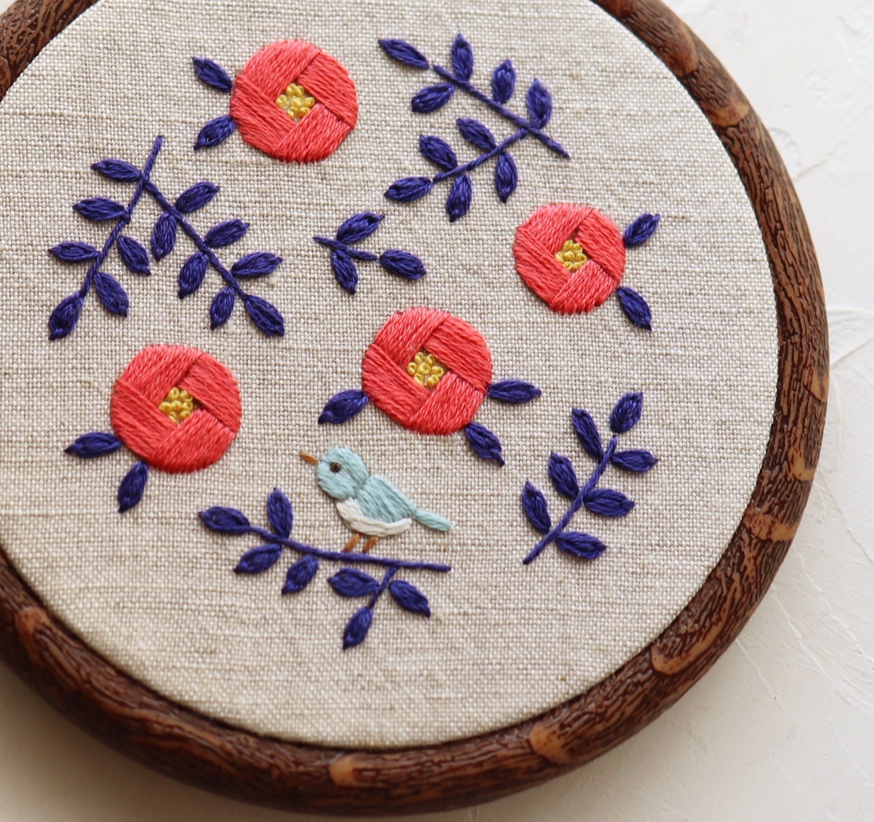 刺繍キット(4)椿(説明書・動画付き)ツバキと小鳥